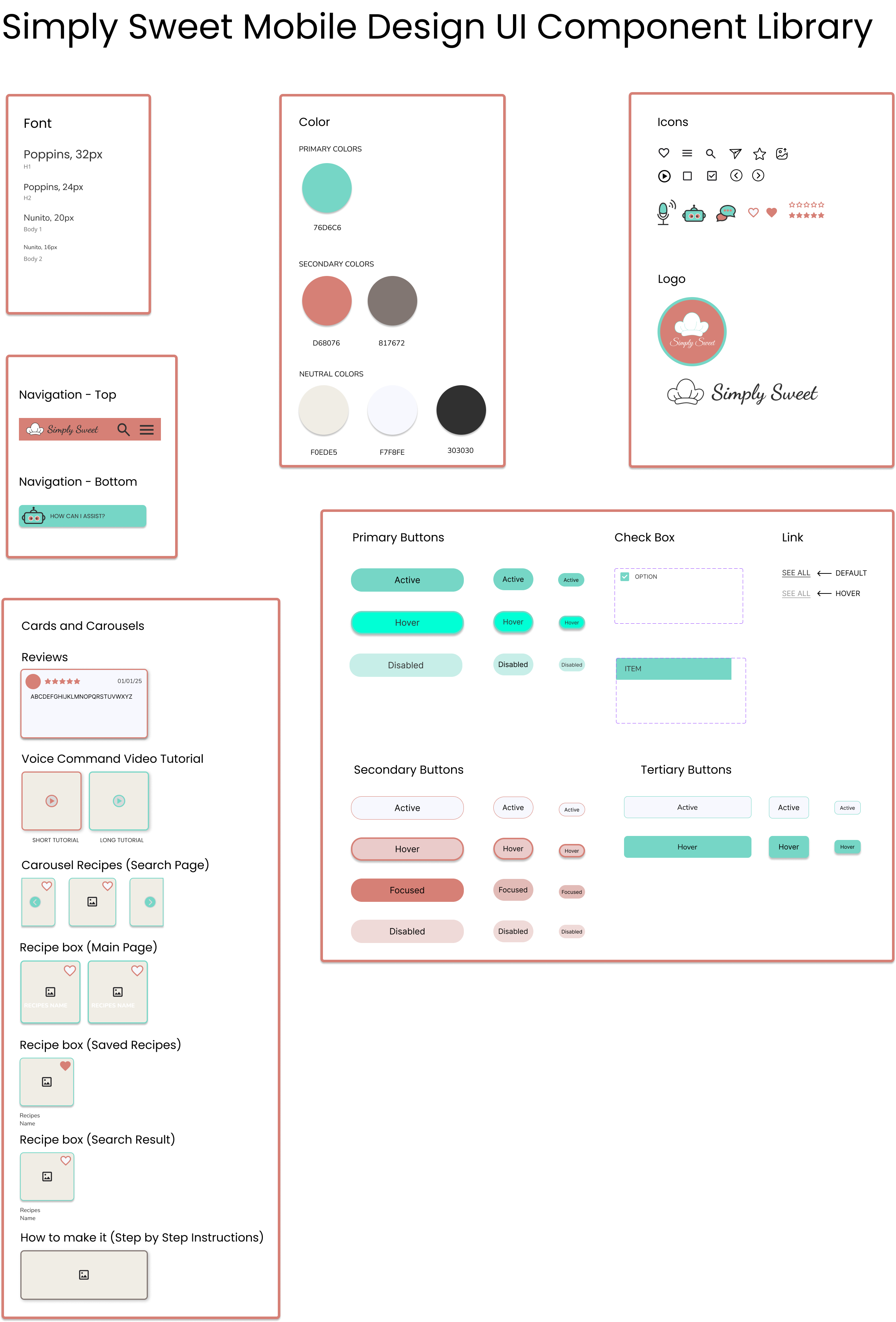 In the duration of my first case study, I gained a significant amount of knowledge in the process of UX/UI. It is a very meticulous journey designing a user friendly and functional design tailoring to the pain points of the personas. Creating Simply Sweet was a fulfilling project to work on, especially being able to see my vision come to life. I particularly thought it was very interesting to hear unique individuals' responses through user interviews and surveys and seeing how everyone’s thought processes work differently. Reflecting back, if I had to do one thing different, it would be to use an audio transcriber during the user interviews. Even though I recorded user interviews via zoom, it would be helpful to have a transcription since it was difficult to take notes during the interview. I believe that it can help save time during the documentation process and utilize the time saved on other areas of the project, especially when there is a specific time frame to complete the project. Overall it was a great experience and I’m excited to see what I will discover and learn in my next project!