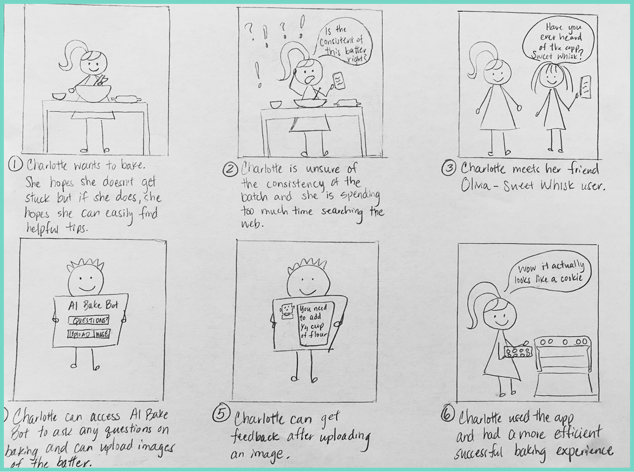 By designing a baking website that provides simple straight to the point directions with images and provides a short and long tutorial users can choose between depending of the complexity of the recipe, and to integrate AI Bake Bot where users can upload an image of their batter to get feedback or gather helpful tips to ensure the likelihood of getting the intended outcome, I believe these solutions meet the pain points for the personas.