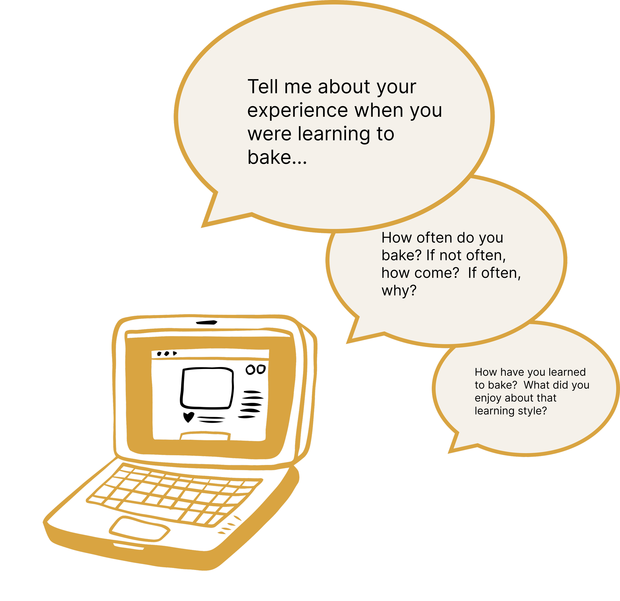 To gain a deeper understanding, and to gain some insights of their motivation to bake, I carefully crafted interview questions to gather as much information as I can to see if there are any common themes or any pain points in their process of baking.
